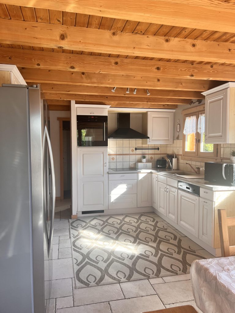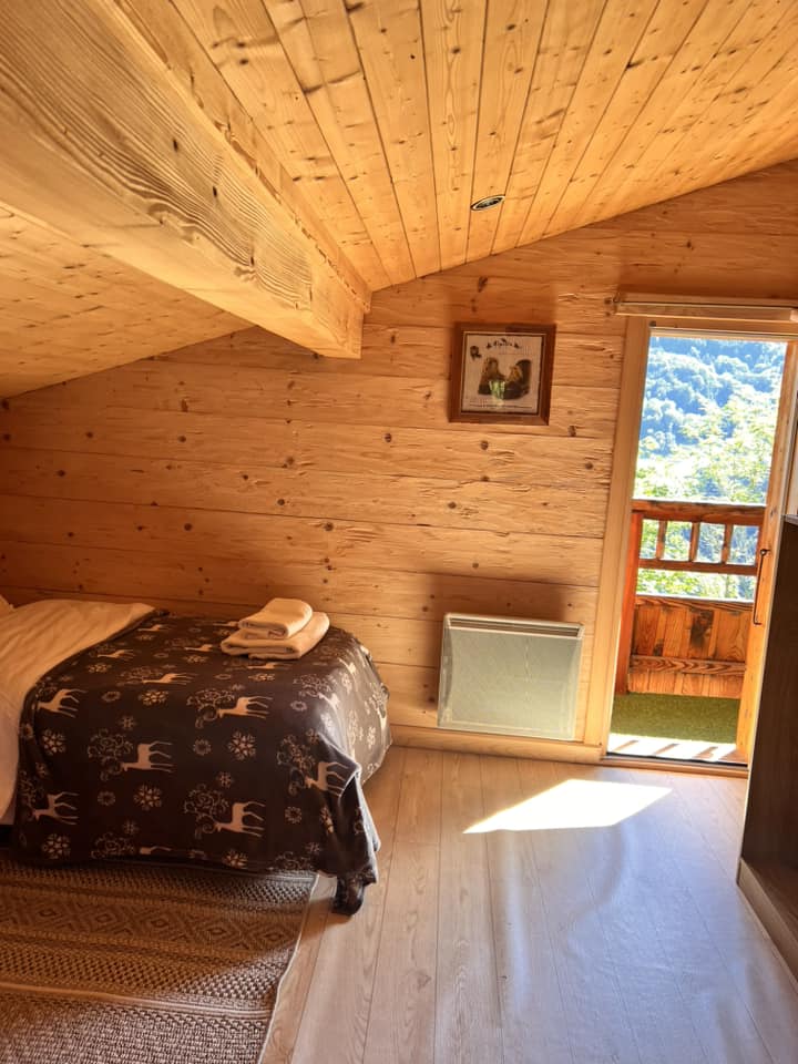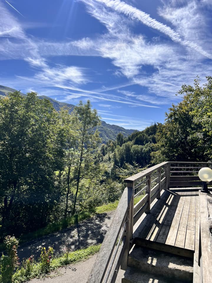À 900 mètres d’altitude, le panorama s’ouvre sur un paysage de cartes postales : des maisons éparses se dévoilent au détour du regard, une route serpente doucement au fond de la vallée, tandis que les cimes enneigées caressent l’horizon et les sapins éternellement verts se dressent fièrement. Mais ce qui vous frappera en premier, c’est le silence. Ce silence presque magique, à peine rompu par le tintement lointain d’une cloche au cou d’une vache paisible dans les prés. L’air pur, quant à lui, vous enveloppera comme un doux voile, et dès votre première nuit au chalet, vous dormirez profondément, bercé comme un bébé.